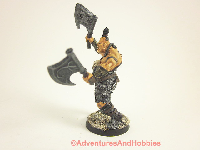 Towering over his opponent, this giant barbarian fighter is fierce in battle. He wields two large battle axes to hack his foes to pieces.